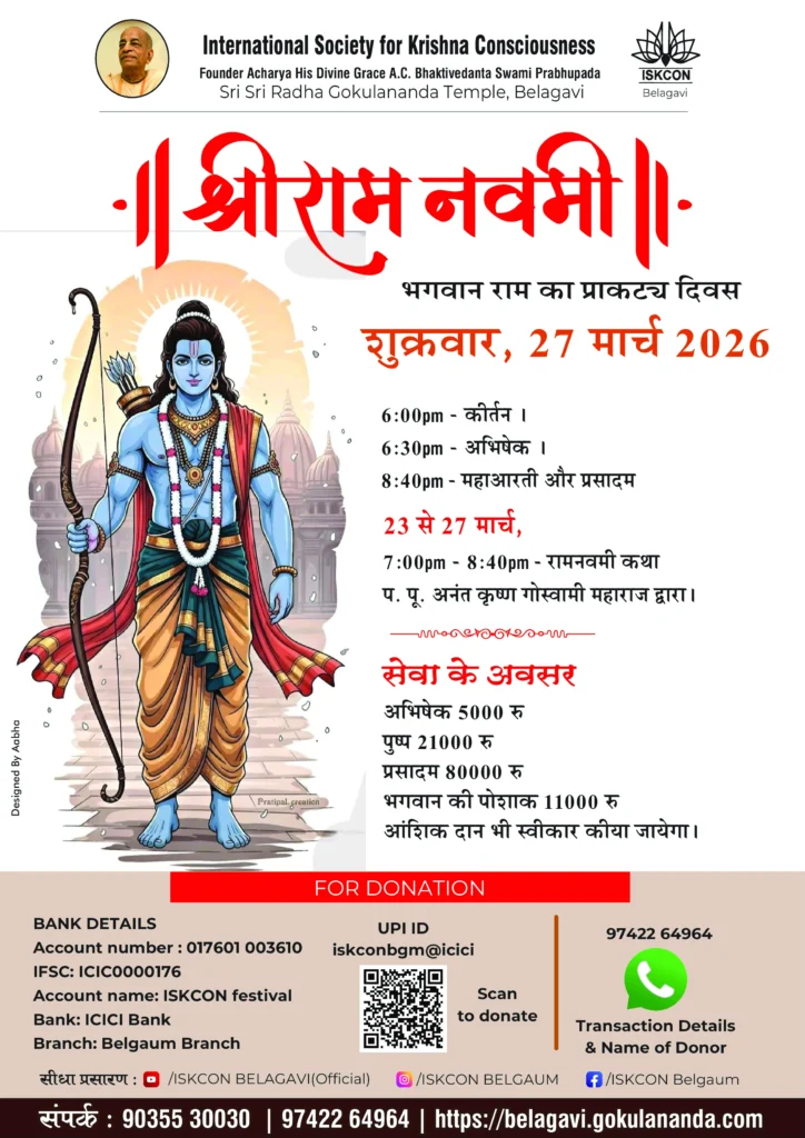 Sri Sri Radha Gokulananda Mandir, situated in the Tilakwadi area of Belagavi / Belgaum, holds a special significance for the devotees of the International Society for Krishna Consciousness. We are a branch of the International Society for Krishna Consciousness (ISKCON),